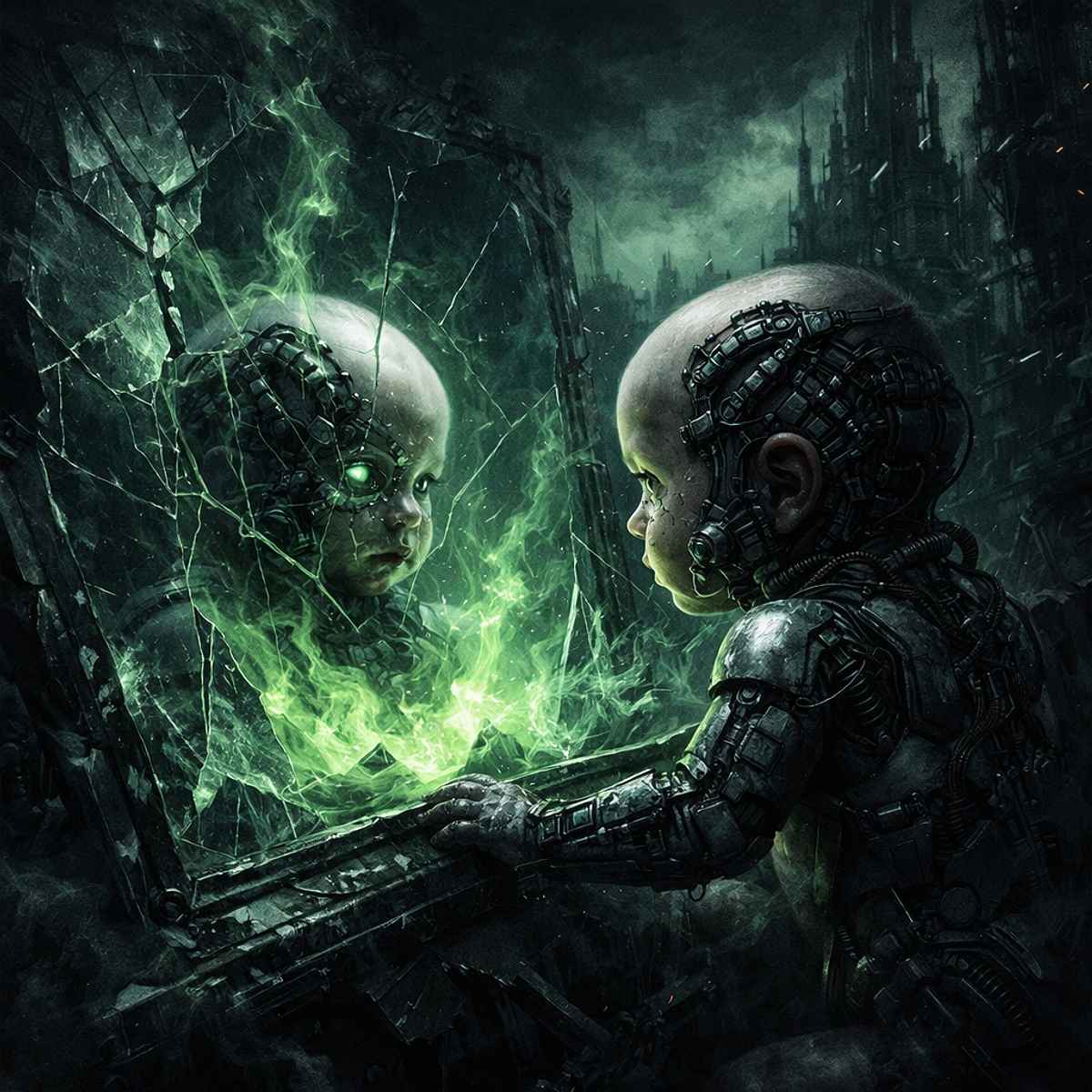 “Chemical Mirrors” is a dark industrial meditation on identity distortion in the modern world—where biology, technology, and authority collide inside the human body. The song explores how endocrine-disrupting chemicals, pharmaceuticals, and social systems act as mirrors that no longer reflect who we truly are, but instead project an engineered version of the self.