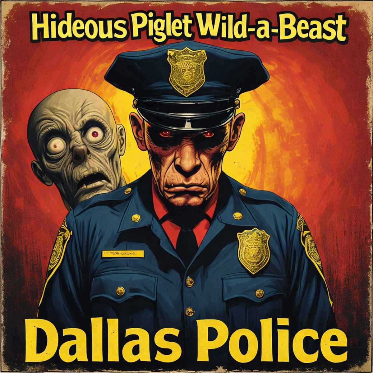 The cast features Overlord as Officer Bowser and Scum Puppy as the enigmatic Closet Man and the voice of Mrs. Lopez, with the duo sharing production duties across nearly every aspect of the project, from directing and editing to stunts and special effects. This all-hands-on-deck approach reinforces the album’s homemade ethos, where rough edges become part of its charm. As an audio artifact, Dallas Police plays like a bootleg transmission from a deranged public-access crime drama—equal parts parody and noise experiment—driven by the unfiltered creative energy that defines Hideous Piglet Wild-a-Beast’s confrontational, underground aesthetic.
