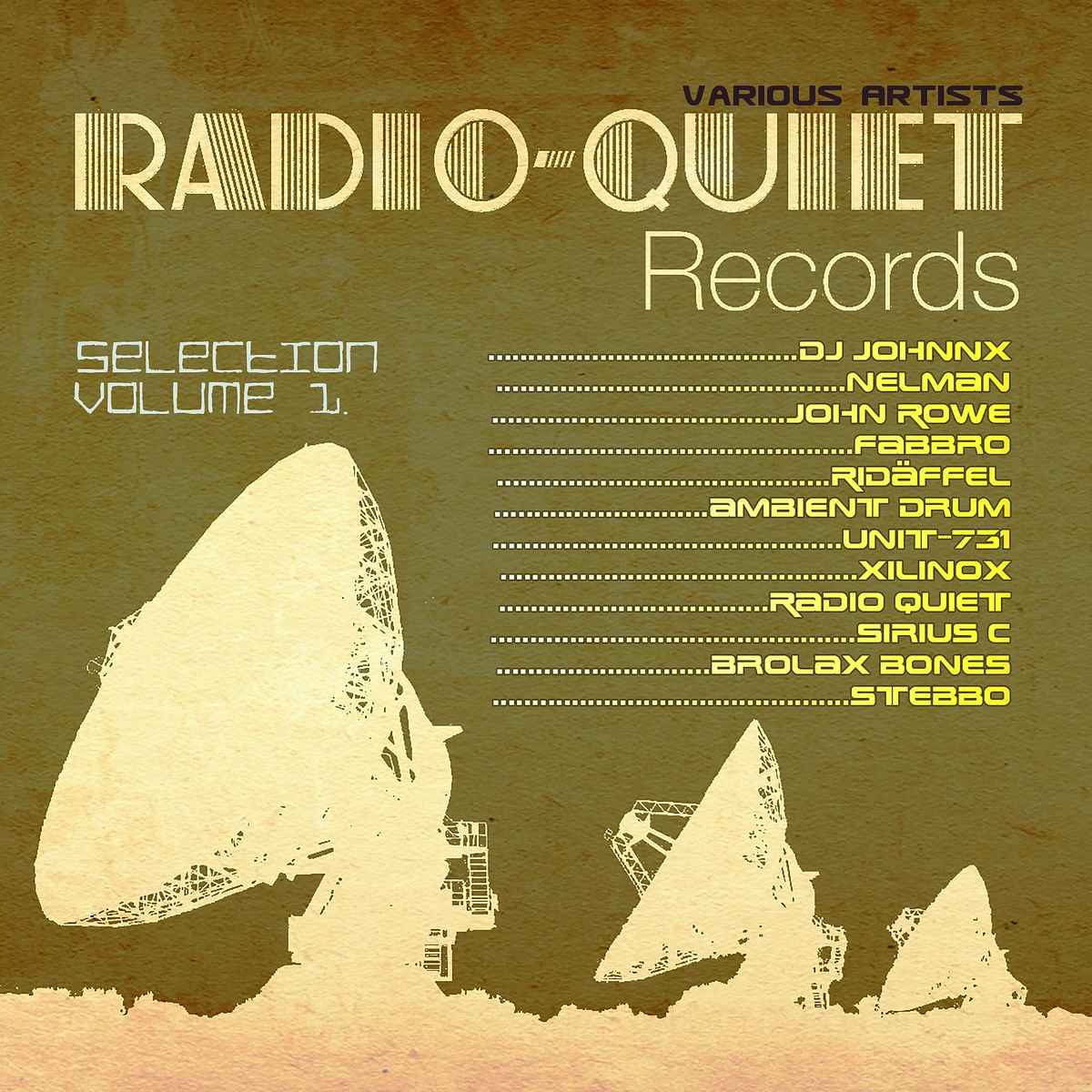 Various - Radio-Quiet Selection, Vol. 1.Stebbo, John Rowe, Radio Quiet, Sirius c & Xilinox and 7 more119-142bpmAcid Techno, Groovy/Raw Techno, Hypnotic Techno, Melodic Techno, TechnoRadio-Quiet Records15...ALBUM